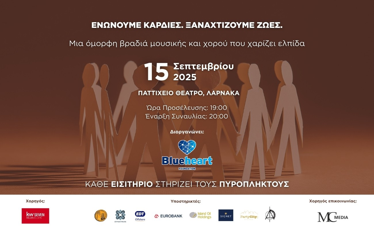Σε νέο χώρο και νέα ημερομηνία η μεγάλη βραδιά μουσικής του Blue Heart Foundation που είναι αφιερωμένη στους πυρόπληκτους συνανθρώπους μας –