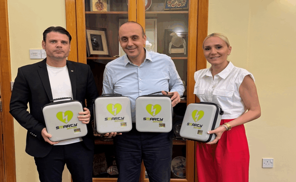 Η εγκατάσταση απινιδωτών σε δημόσιους χώρους συμβάλλει ουσιαστικά στην ενίσχυση ετοιμότητας της πόλης, είπε ο Δήμαρχος Πάφου Φαίδωνας Φαίδωνος, παραλαμβάνοντας τέσσερις σύγχρονους απινιδωτές, δωρέα του Blue Heart Foundation στον Δήμο για τις ανάγκες των πολιτών.